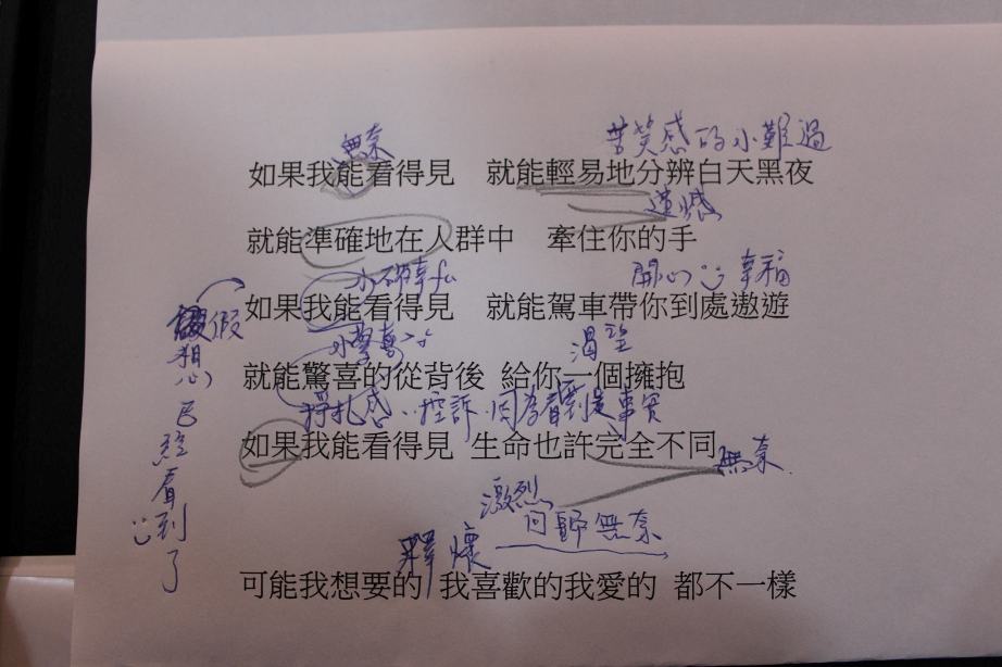 圖片的歌詞上寫的是歌手看到歌詞時心裡的感覺,而這就是歌唱表達的關鍵。